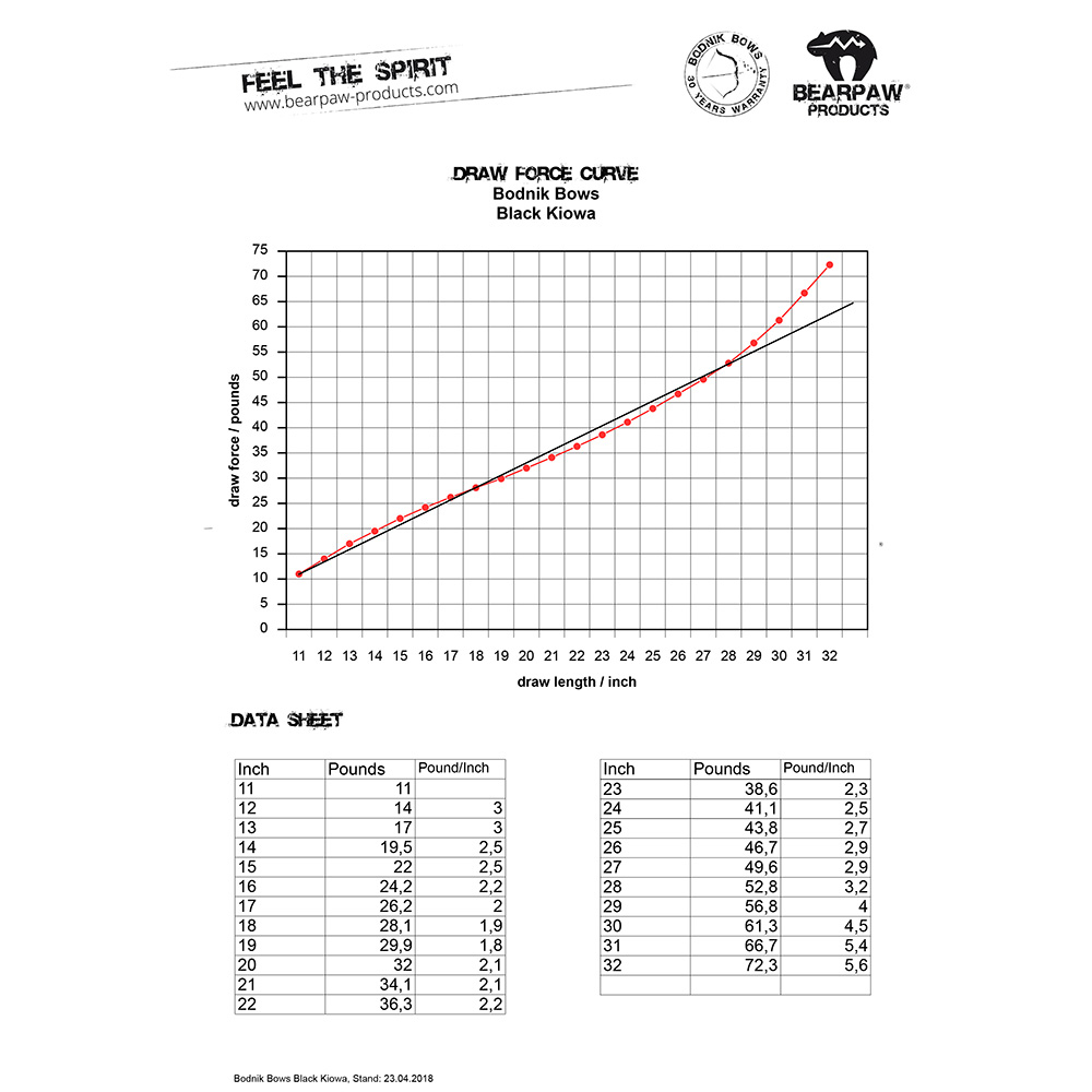 - Zuggewicht: 30, 35, 40, 45, 50, 55 und 60 lbs