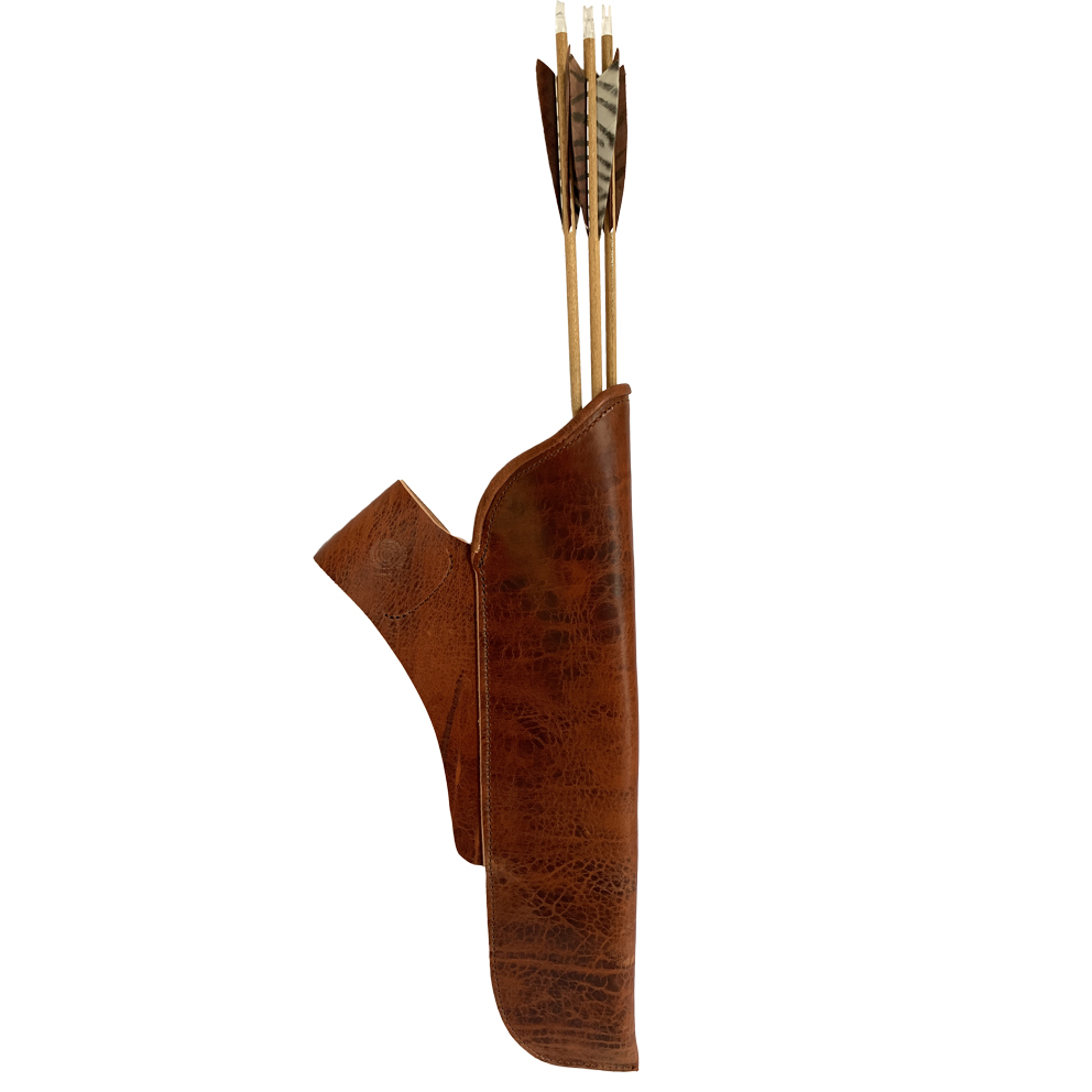 Der Seitenköcher aus der Premium-Lederserie von Bow-Targets besticht durch elegantes Design und ein besonders strukturiertes Leder in einem warmen Cognac- Farbton.