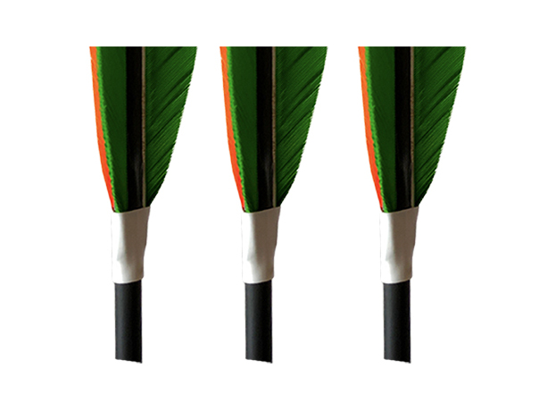 Schrumpfschläuche sind einfacher und schneller anzubringen als eine Wicklung. Der Schlauch schützt die Federn und zugleich die Bogenhand beim Schießen über den Handrücken vor den scharfkantigen Federkielen. Die Schrumpfschläuche sind für Schaftdurchmesser von .165 bis .204 geeignet.