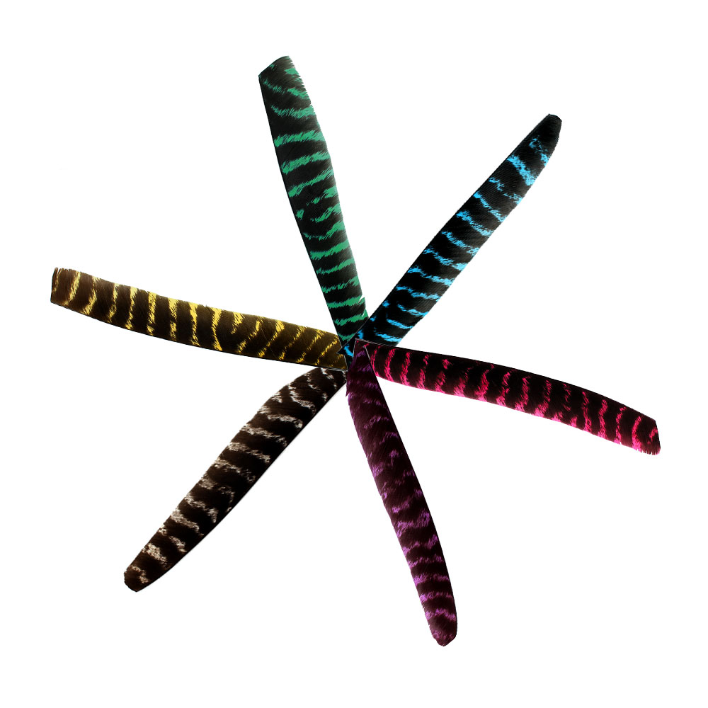 Jede dieser echten naturgestreiften Truthahnfedern ist einzigartig. Sie wurden in zarten Farben coloriert, die zusätzliche Akzente setzen. Federn in voller Länge werden bevorzugt zum Herstellen der eigenen individuellen Federformen benutzt. Bogenschützen verleihen ihren Pfeilen eine persönliche Note und können bei Benutzung der Bearpaw Federstanze aus vielen individuellen Federformen auswählen. Federn in der vollen Länge sind ein reines Naturprodukt und variieren in ihrer Länge und Kielstärke.